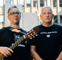 musikalischen Niveau verspricht. Wie immer werden sich „da Huawa“ (Christian Maier) und „I“ (Sepp Haslinger) nicht lumpen lassen, um mit Vollgas ihr Publikum zu begeistern. Die beiden Vollblutmusiker werden stimmgewaltig, witzig, urbayrisch und hintersinnig alle Facetten des allzu menschlichen Lebens unter die Lupe nehmen. Sie singen im schönsten Dialekt über bayrische Befindlichkeiten, Eigenheiten und Jugendsünden, über Heimatliebe und Heimweh - immer mit vui Hoamatgfui, aber immer mit einem offenen Blick über den eigenen Tellerrand hinaus.